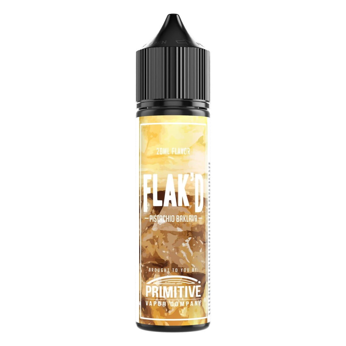 Το Flak’d από την Primitive Vapor είναι η ατμιστική απόδοση ενός παραδοσιακού, σιροπιαστού γλυκού που θυμίζει έντονα τον δικό μας μπακλαβά. Είναι ένα υγρό “υψηλής τέχνης” που καταφέρνει να απομονώσει την αίσθηση της τραγανής ζύμης και των ξηρών καρπών, “πνίγοντάς” τα σε μια θάλασσα από μέλι και σιρόπι.